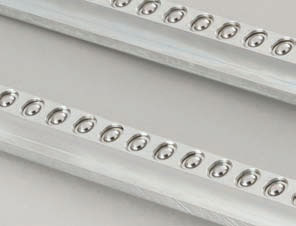 High-density dies usually require several ball-style rails or a pair of heavy-duty roller rails, which move in only one direction, the direction it is inserted, or inline (see Figure 3). If you want the die to move both inline and in the transverse direction, a pair of insertion rails and a pair of transverse rails (see Figure 4) are required.